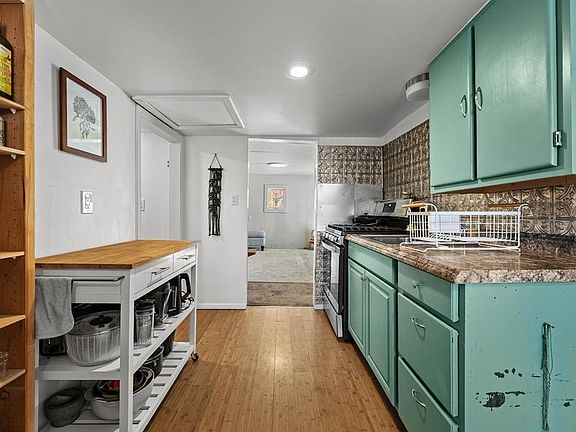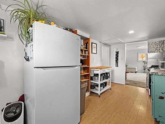 This quaint bungalow is situated on a double lot in the quiet Animas City neighborhood. This property is set back from busy roads, and offers 708 sq ft of single level living with a storage shed and large yard. The home was built in 1946 and has a newer woodstove, washer/dryer, refrigerator and range/oven. While it has one conforming bedroom, there are a few different rooms, offering a functional layout. The bathroom has been updated with cute and clean finishes and the kitchen has everything you need in a compact space. This property would work great as a small primary residence, lock and leave vacation home, rental, or even an investment, as there is great potential for future development. As an 8,500 sq ft lot, it fits within the City requirements to have a home with a detached ADU. In the front yard there is a nice privacy fence and gorgeous boulders, creating a sweet place to relax. This property has both street and alley access and is located just steps from the Animas river, grocery store, trails, and other conveniences.