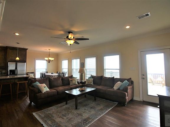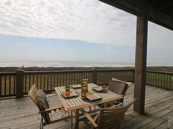 BEACH FRONT. 84' WIDE lot. Has a green space lot next door on east side. "L" shaped grand area for entertaining & Beach views. The 2 decks offer PANORAMIC VIEWS of sunrises over Gulf, incredible night sky. What a soaring view. 16' X 42' Deck is the perfect place to entertain and beach-side dining. All bedrooms have access to decks. Sand Castle: Spacious Layout with lagoon, Golf cart and pedestrian access to Beach. Restricted; Voluntary homeowners, established dunes and vegetation line. 1st main level Master has custom shower and spa tub & Wonderful kitchen for cooking and serving,granite counter-tops in. The upstairs has 3 bedrooms including. En-Suite Bedroom. Theater room. . Ground Level: slab, picnic area, sand shower & storage for beach toys. Close to Boat Launch. Vacation Rentals Allowed. Furnished. Need a 1031 exchange?