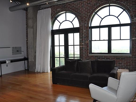 Sophisticated & Stunning Penthouse with Fabulous Buckhead Skyline Views. Large walkout balcony. This Incredible Custom Loft has Exposed Brick Walls, 14 ft Ceilings, Exposed Ducts, Arched Windows, Hardwood Floors throughout. Custom Kitchen, Designer Lighting, Recently Renovated Bath with Custom Shower and Custom Build in Closets. Pool, clubhouse, rooftop deck, and fitness center. Gated Building with 2 Flat level Parking Spaces and 24 hour Concierge. Mathieson Exchange Lofts is the perfect Buckhead location!