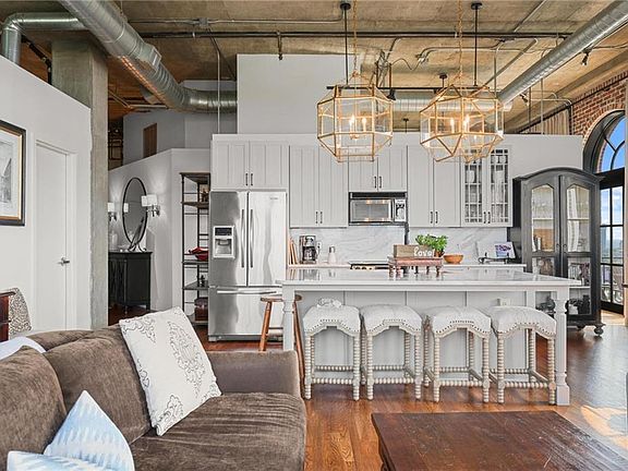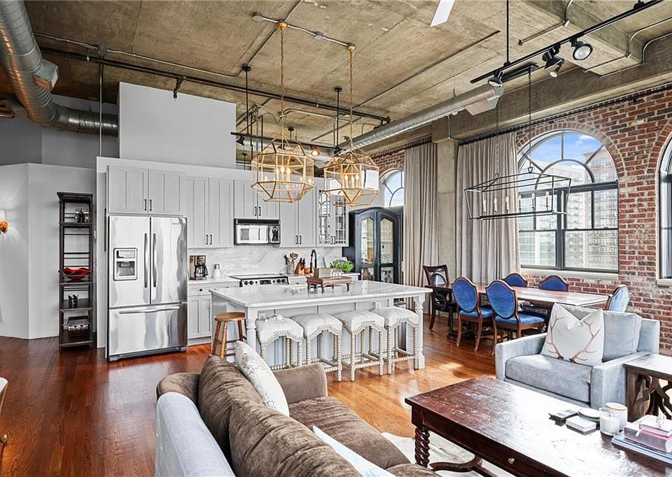 Contemporary Loft Living on a tree lined residential neighborhood in the Heart of Buckhead. The Mathieson loft building is within steps to Buckhead's finest restaurants, Buckhead Village shopping, Trader Joes and Whole Foods. Experience modern elegance in this stunning corner 2-bedroom, 2-bath loft featuring soaring over 12+ foot ceilings and striking Palladium windows that flood the space with natural light. The stylish kitchen boasts new quartzite countertops, sleek cabinetry, and premium appliances—perfect for both cooking and entertaining. The expansive master suite offers a private retreat with walk in closet space, a luxurious bath with soaking tub, double vanity and access to one of two spacious terraces for seamless indoor-outdoor living. Original interior brick walls add warmth and character, while custom curtains elevate the design. The expansive living area opens to sweeping city vistas, offering an ever-changing backdrop from sunrise to sunset. With TWO terraces, abundant sunlight, and a blend of contemporary upgrades and industrial charm, this loft delivers the ultimate city lifestyle. The community features 24 hr. concierge, Pool with hot tub, grilling area, roof top terrace with club room and pool table. The building has been recently updated with a new Security Fob access system, installed new pavers at motor court lobby, upgraded Fitness center, and aesthetic enhancements. Enjoy exceptional service provided by First Service Residential. The loft comes with 2 parking assigned parking spaces and large storage space. Seller installed new HVAC 2025, LG Washer/Dryer, Hot water heater 4 yrs old & replaced all windows. Mathieson is truly one of the most special buildings in the city. Don't wait for this amazing opportunity.