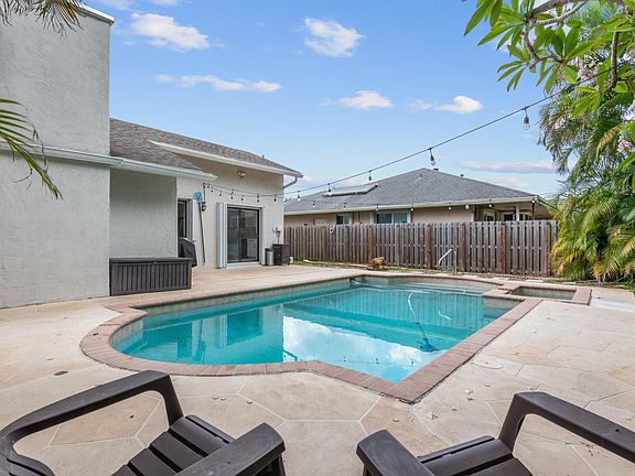 Take a step into your private oasis in the backyard surrounded by palm trees with a heated pool/jacuzzi, outdoor storage, and a BBQ that is included. This house has been fully renovated with a new roof, new A/C unit, new pool heater, new washer/dryer, new automated sprinkler system, new blinds, new paint in each room, and remodeled bathrooms. The spacious kitchen with custom wood cabinetry, granite countertops, waterfall island, and stainless-steel appliances (Refrigerator, Stove/Oven, Dishwasher, Washer/Dryer, and a Trash Compactor). 5 minutes away from Sawgrass Mall and all of the shops. Move in as soon as everything is approved!