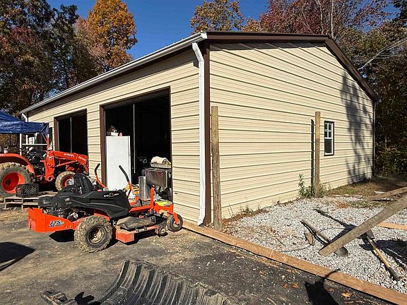 Prime hunting landLarge back deckWall around work benchesMetal roofBlacktop drivewayShingled roof