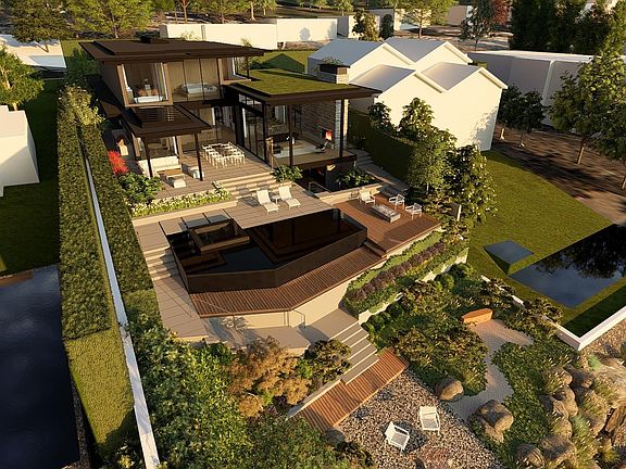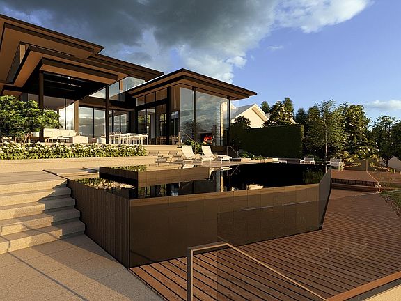 Waterfront pool and patiosExtraordinary courtyard feature