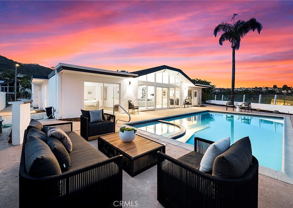 Welcome to 31802 Isle Royal, a rare opportunity to own a Joseph Eichler inspired-design home, nestled on a peaceful, private street with elevated views of the El Niguel Golf Course. Truly an outstanding Single level home with absolutely "no steps" located within the coveted area of "National Park" and only minutes away from the Pacific Ocean. Step inside and experience the hallmarks of Eichler's visionary architecture--signature post-and-beam construction and floor-to-ceiling glass walls. This residence provides 4 bedrooms, 2 bathrooms, vaulted ceilings, new carpet throughout, both exterior and interior new paint, multiple skylights, separate dining area, family room with fireplace and an approximate 15,300sqft site offering outstanding entertainment options and the ability to add an ADU or pool house for the large in-ground swimming pool. The rear wall of the dining and family room areas is comprised of mostly glass. The Master suite has direct access to the outdoor jacuzzi & pool, mirrored closet doors. The master bath includes two sinks, walk-in shower and newer fixtures. The kitchen area includes an additional sky light, five-burner gas range, double ovens, trash compactor, dishwasher and plentiful cabinet space. This residence truly qualifies as "open & spacious" and "light & bright". Oversized 2-car garage is partially finished, contains additional storage cabinetry and opens to an oversized 2-car driveway. This single-level mid-century modern gem captures abundant natural light throughout the day and offers a seamless connection between indoor and outdoor living. This home embodies the California modern ethos Eichler championed-- with its clean lines, minimalist facade, and warm indoor-outdoor transitions. It’s ready for your vision: preserve its architectural integrity while incorporating your own modern finishes to create a truly bespoke residence. Don’t miss your chance to own a legacy in one of Laguna Niguel’s most desirable coastal communities.. Excellent proximity to the Pacific Ocean and the World Renowned Salt Creek Beach with its famed surfing breaks, the Ritz Carlton and Waldorf Astoria Resorts! Minutes away from Dana Point with both its Harbor and Lantern District offering numerous shopping and dining opportunities as well Laguna Beach!
