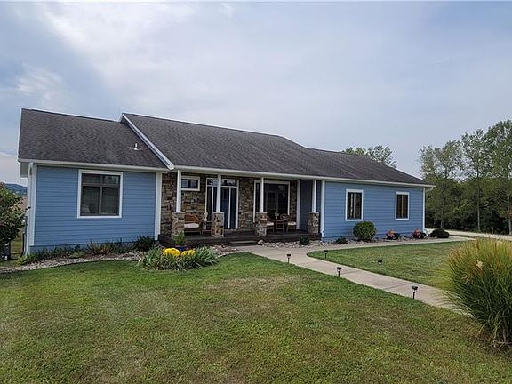 Welcome to your dream ranch-style retreat nestled atop a picturesque hill on 10 sprawling acres in the heart of a charming small town. This custom-built gem offers the perfect blend of privacy and breathtaking sunsets through Anderson windows, making it the ideal haven for those seeking tranquility and natural beauty. The main level is adorned with a venetian plaster entry, stunning walnut wood floors, 9 ft ceilings, stunning FP with circulation vents, and custom designed oak cabinets in the kit with new appliances for the chef of the home. The open floor plan creates an inviting ambiance that is both elegant and comfortable. Make your way through to the newly finished walk-out basement flooded with natural light and full kitchen w granite countertops providing a seamless extension of your living space plus a custom designed storage shelter with vault door. The spacious layout invites you to unwind and entertain effortlessly. For the automotive enthusiast or simply those in need of ample storage space, a massive 1000 sq ft 3-car garage w 12 ft ceiling awaits, ensuring your vehicles and belongings are sheltered and secure. Experience the epitome of country living while enjoying modern comforts in this exceptional ranch-style home!