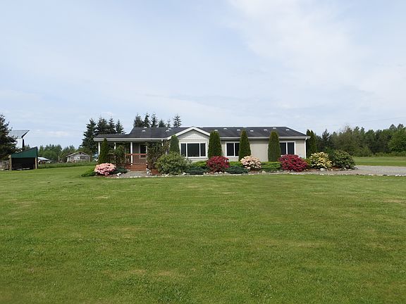 Enjoy single level living from this beautiful home perched on 10.2 acres w/ large shop! Home has 3 sizable bdrms, 2 bthrms+office w/ large windows throughout overlooking the beautiful acreage & bringing in lots of natural light. Open kitchen w/ eating space includes lots of counter & cabinet space. Off the kitchen is the family rm opening to a deck overlooking the peaceful views. Spacious primary ste incudes walk-in closet & large ensuite w/ 2 vanities & soaking tub w/ windows to enjoy the serene setting. New roof & water heater w/in last 2 yrs. Don't miss the covered firepit area, great for entertaining! Awesome 36x46 shop w/ RV door. Home is in a wonderful & private location that is still close to I5 & Bellingham.