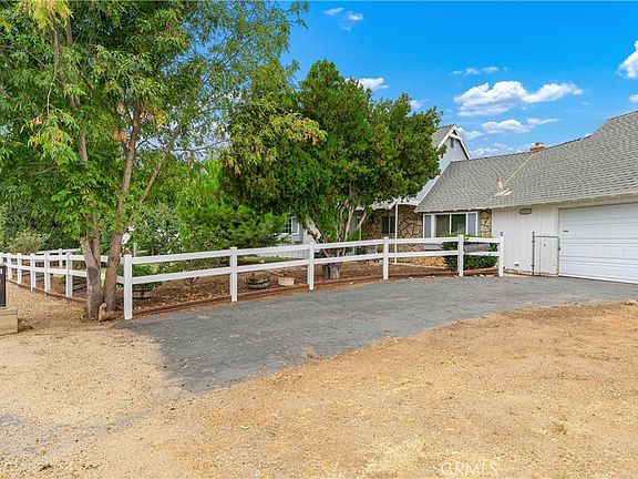 Terrific opportunity on this spacious and expanded 6 bedroom, 3 bath home located in a terrific neighborhood with 3 bedrooms downstairs and 3 bedrooms upstairs. Features include New Pearl Certified A/C and Heating, New luxury waterproof vinyl wood flooring, New carpet in bedrooms, fresh interior paint, dual pane windows, window blinds, ceiling fans, and tons of storage. The sunny kitchen features wood cabinetry and stainless steel appliances opening to the dining room with a whitewashed brick fire place. The spacious family room features multiple windows letting the sunlight in. Downstairs primary suite includes a primary bath with shower and a door to the backyard. Two more secondary bedrooms and a hall bath with a bathtub. Upstairs are 3 large bedrooms with new carpet and lots of storage and a hallway bath with shower. Indoor laundry room with cabinets, and a large utility/pantry room. Two car garage with tons of built in storage plus overhead attic storage room. The large backyard is flat and offers numerous fruit trees including orange, peach, nectarine, apple, plum, and mandarin orange along with blackberry bushes and container gardens. There are 3 storage sheds, vinyl fencing, chain link fencing and a gate to the horse trail behind the property. There is plenty of room to park all your toys and there is RV parking with a dump station. Plenty of room for horses or add a pool. The charming front yard offers vinyl fencing, grass lawn, and plenty of parking. This large home offers a lot of opportunities to customize and bring your vision to make it your own. This wonderful neighborhood includes a private riding arena just around the corner from this home. This home is steps to Kips Korner Park with playground and tennis court and close proximity to horse trails, schools, shopping, restaurants and freeways. Don't miss out on this one!