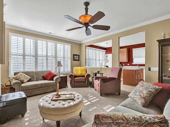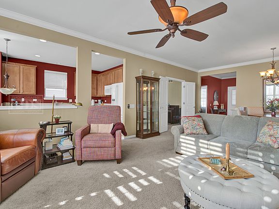 Live the good life at Grand Dominion! This model is sure to please and so affordable. Large private master suite with double vanities, jetted tub, separate shower. Kitchen offers eating but also large dining room off living area. Living room has fireplace with built in bookshelves, upgraded wood blinds, close to fitness center /indoor and outdoor pools, almost 2 miles of walking trails, tennis courts, bocce courts and so much more. Lage garage offers extra cabinetry and cedar closet. This lovely home is a great place to call home!!