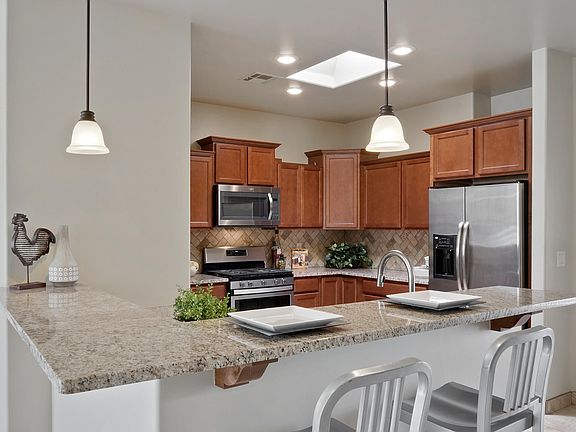 Practically brand new home, move in ready! This home has it all. Great location, beautiful design, bright and open! When you walk in you will feel right at home! Enjoy the large living room with tile floors, a fireplace and some amazing views of the mountains. Gourmet kitchen has a breakfast bar for additional seating, granite counters, stainless steel appliances, pantry, skylight & custom wood cabinets. Formal dining room w/ chandelier. 3 beds, 2 baths, 2 car garage. Master Bedroom has built in shelves, tile floors, & walk in closet. The backyard is very low/no maintenance yard. Great for enjoying your favorite cup of coffee/tea and relaxing!