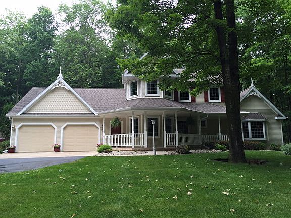 4+ Beautifully wooded acres is the setting for this stately elegant home built in 2000. Not to be missed is the 1250 square foot office and workshop, which could also serve as an artist's studio. The architecturally detailed covered front porch greets you as you enter this lovely home, high-end finishes including granite countertops, cherry cabinets, walk-in pantry, vaulted ceilings and beautiful master suite highlight the home. 3 car attached garage and full basement. Impeccable maintained inside and out.