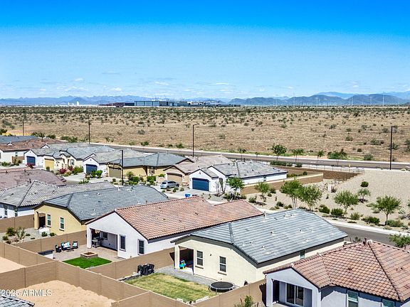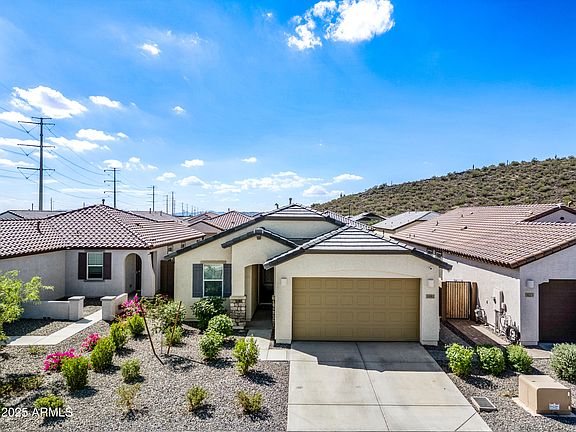 This property is eligible for 4.99 % VA LOAN ASSUMPTION by another qualified VA borrower, subject to lender and VA approval. Welcome to this beautifully upgraded 3-bedroom, 2-bathroom home in the highly desirable gated Middle Vista community, offering enhanced privacy, security, and access to private playgrounds and green spaces. Built in 2024, this single-level ''Coronado'' model features 1,411 square feet of thoughtfully crafted living space—perfect for both relaxing and entertaining.The open-concept great room seamlessly connects the kitchen, dining, and living areas, creating a warm and inviting space for gatherings of all kinds. Step outside to a covered patio and a lush, grassy backyard with built-in planters—ideal for enjoying the outdoors in comfort and style. The kitchen is equipped with sleek Frigidaire appliances, while the laundry room includes a Samsung washer and dryer for everyday convenience. Energy-efficient ceiling fans in every bedroom and a slotted garage storage system add comfort and functionality. Permanent holiday lighting brings festive charm and year-round curb appeal. The owner's suite is privately located at the rear of the home and includes a spacious en-suite bath and large closet. Two additional bedrooms off the foyer offer flexible space for guests, hobbies, or a home office. Middle Vista offers a welcoming environment with exclusive access to private playgrounds and green spaces, perfect for enjoying the outdoors just steps from your door. Located minutes from major employers like TSMC, Gore, USAA, and HonorHealth, and with easy access to I-17 and Lake Pleasant, this home offers the perfect blend of convenience, recreation, and peaceful living. Don't miss your chance to own this move-in-ready gem in one of Phoenix's most desirable neighborhoods.