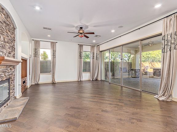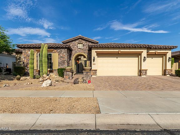 Attention Investors! Make an offer! Prepare to be captivated by this awe-inspiring Santa Barbara-style residence, boasting 5 spacious bedrooms and 4.5 luxurious baths, along with a generous finished basement that's perfect for entertaining or relaxation. The exterior charm features a striking stone façade, a 3-car garage, and meticulously designed desert landscaping that complements the inviting courtyard, creating an ideal first impression.