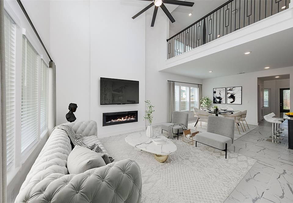 Welcome to this beautiful, well-maintained Toll brothers single family home located in the sought-after master planned community of Pecan Ridge in Fulshear. This spacious residence features 4 bedrooms, 3 1/2 bathrooms, and an open-concept layout ideal for both entertaining and everyday living. The home boasts modern finishes, high ceilings, and abundant natural light. The chef's kitchen includes granite countertops, stainless steel appliances, a large island, and ample cabinet space. The primary suite is downstairs and offers a peaceful retreat with a luxurious en-suite bathroom and walk-in closet. The guest suite on the first floor is tucked away to ensure privacy and includes an en-suite bathroom and spacious closet. Secondary rooms are located upstairs. Beautiful tile is located in the open areas with lush carpet in the bedrooms. The large game room upstairs is ideal for a full size pool table or loads of games for entertainment.
