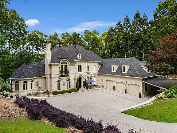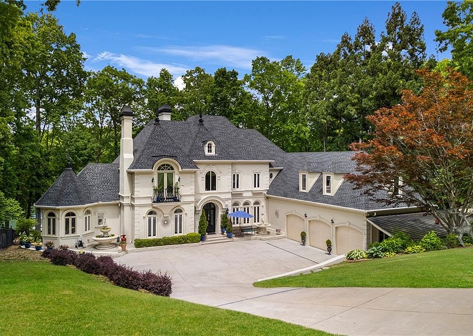JUST REDUCED $300,000- NOW PRICED $500,000 BELOW APPRAISAL! BE SURE TO WATCH THE PROFESSIONAL VIDEO TOUR! Extraordinary Lake Lanier Estate with Private Double Slip Dock Experience luxury living at its finest in this one-of-a-kind trophy estate, perfectly positioned on the shimmering shores of Lake Lanier. Behind stately remote gates, this architectural masterpiece commands attention with its French-inspired dormers, grand Palladian windows, flowing water features, and dramatic double black spires. Inside, the home is equally breathtaking—gleaming Bolivian Cherrywood floors, five fireplaces, and entire walls of floor-to-ceiling windows invite panoramic lake views into nearly every room. The expansive chef’s kitchen is equipped with quartz countertops, flat cooktops, stainless steel appliances, and an oversized breakfast bar perfect for entertaining. The primary suite is a true retreat, with direct access to the back deck, a fireplace, sitting area, and a spa-like bath featuring radiant marble floors, steam shower, a jetted tub framed by ten arched windows, and serene water views. The newly finished terrace level offers full second-living quarters, complete with a designer kitchen, quartz island, custom built-ins, hardwood flooring, and a spectacular sunroom. Step outside to a resort-style backyard, featuring a $60,000 Michael Phelps swim spa, an expansive deck spanning the full length of the home, and a two-story party dock with an upper-level lounge and hot tub—all on coveted year-round deep water. This is more than a home; it’s an unrivaled lakeside lifestyle.