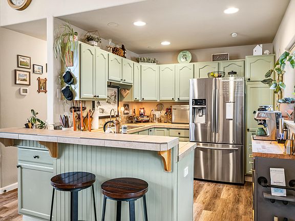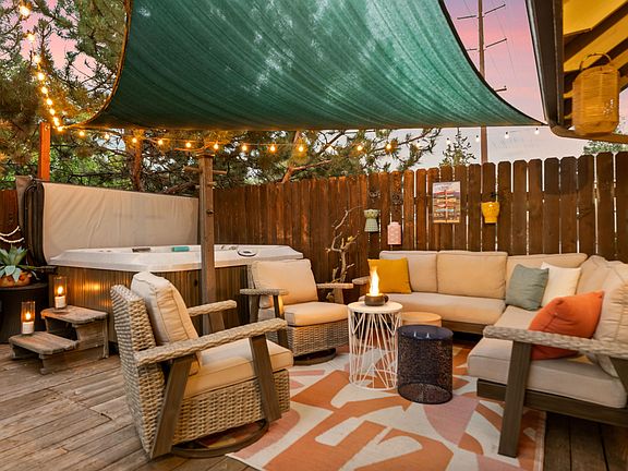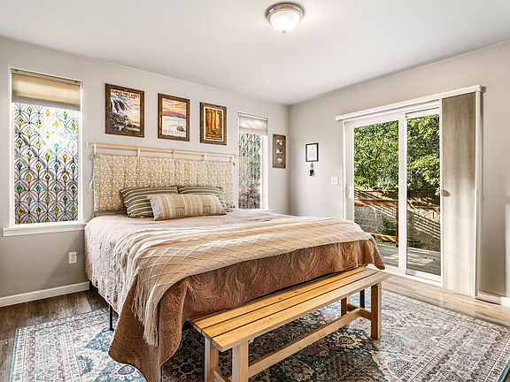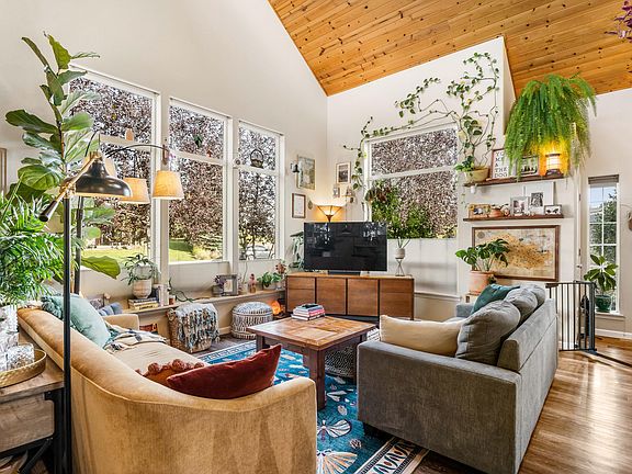 Let your dreams run wild with this comfortable home and spacious lot! Vaulted ceilings lined with knotty pine that infuses the living space with a natural, warm feel. Light pours in through windows at the top of the vaulted roof, skylight and numerous large east-facing windows, filling the home with the soft glow of morning light. Main floor features a primary with its own sliding door to the deck, while the upper level hosts two additional rooms and full bath. The owners have meticulously crafted this property into a personal retreat, yet its expansive yard still offers endless possibilities for customization. Fenced backyard designed for dogs, relaxation and entertainment. Enjoy the hot tub, the lush green of crisp turf, and the inviting glow of the fire pit area. A raised garden bed awaits your green thumb, and a new shed provides extra storage. The privacy here is wonderful, allowing you to live the life you love in your own sanctuary