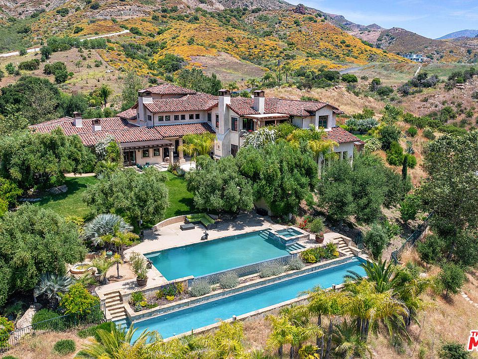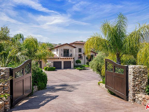 Timeless Tuscan masterpiece set behind the gates of the prestigious Lobo Canyon Estates. This 7637 sq ft home spans over nearly 50 acres of private and picturesque land, perfect for ranching, equestrian pursuits and outdoor recreation with countless trails to explore. Complete with its own underground water well and resort-style grounds, the home features tiered pools, an endless exercise spa, a seasonal creek with mature trees, manicured gardens and parking for more than 20 cars, all just minutes from Malibu. The estate offers several primary suites with private elevator access and serene garden balcony views, soaring ceilings with oversized windows, multiple fireplaces, formal living and dining rooms, a wine cellar, gym, sauna, and a spacious open-concept kitchen perfect for large-scale entertaining or just showcasing your culinary skills at home with friends. A rare estate offering and an opportunity not to be missed.