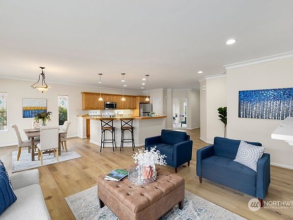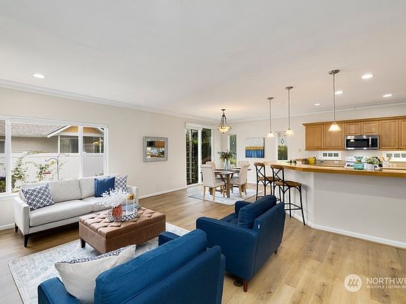 Welcome home to this lovely Rambler in the sought after 55 & older, gated community of Palisades at Dash Point! This one story home features an open concept floor plan with a spacious kitchen w/island and consisting of 9' ceilings & crown molding. The home includes 2 bedrooms, 2 full baths, den/office, central A/C, 36" passageways in primary bedroom/bath, den & laundry room for wheelchair accessibility. Large laundry room with sink, counterspace & overhead & below counter storage with pull out drawers. Double garage features built-in shelves newer H20 heater & furnace. HOA dues include weekly lawn maintenance, insurance, & tree & shrub pruning. Just minutes from Dash Point & Browns Point Parks, shopping, restaurants & easy freeway access!