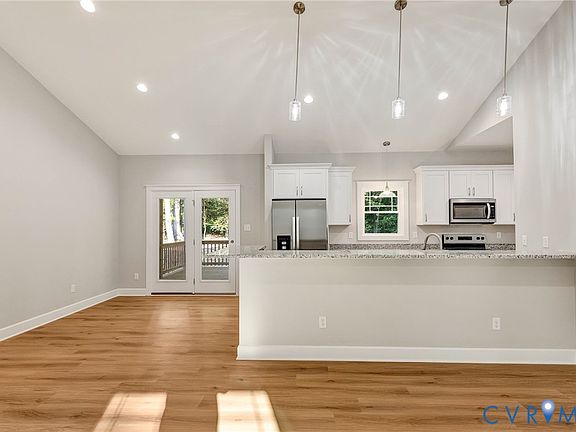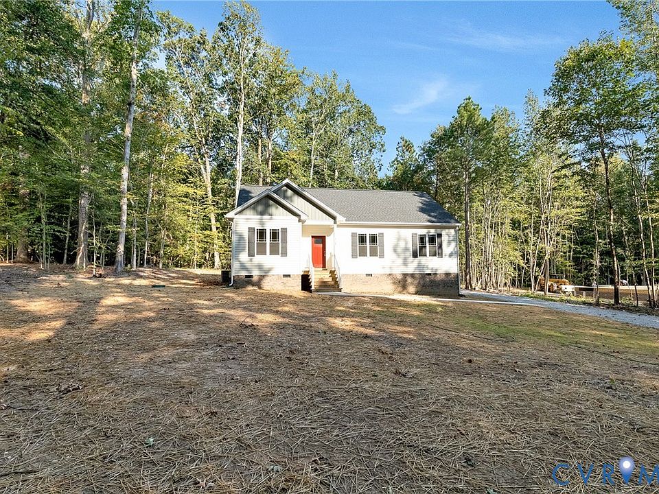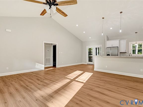 Move in ready 1460 SF NEW CONSTRUCTION ranch, 3 bedroom, 2 bath, quaint dwelling nestled on .9 acres. Located between the Towns of Irvington and Kilmarnock this partially wooded lot offers a quiet, private yet convenient spot to many local shopping and dining experiences. The house offers an open floor plan, vaulted ceilings in the great room and kitchen area, and 9 foot ceilings throughout the remainder of house. Large primary bathroom with walk in shower double bowl vanity and linen closet. Tile and laminate wood flooring throughout. Split bedroom floor plan with a large primary bedroom, a walk-in closet and a private bath. Spacious covered rear deck with ceiling fan offers space to relax in private or entertain. The kitchen features stainless steel Whirlpool appliances, soft close real wood cabinetry and granite tops. Brick foundation with extra course height for an easy crawl space access, premium vinyl siding, gutters with gutter guards.