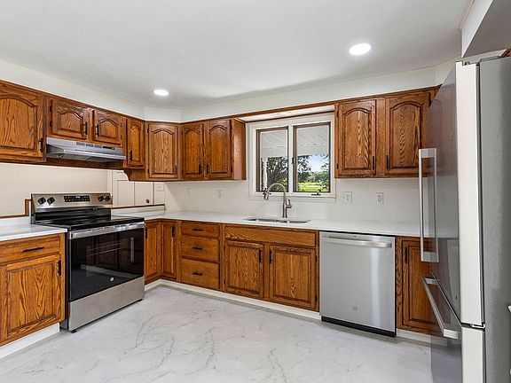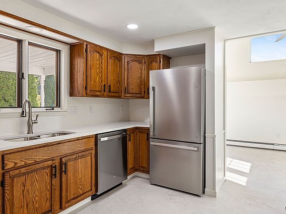 The heart of the home is the newly updated kitchen, featuring sleek countertops, stainless steel appliances, and fresh flooring that ties everything together. Whether you're preparing weeknight meals or hosting family gatherings, this kitchen is designed with plenty of counter and cabinet space.