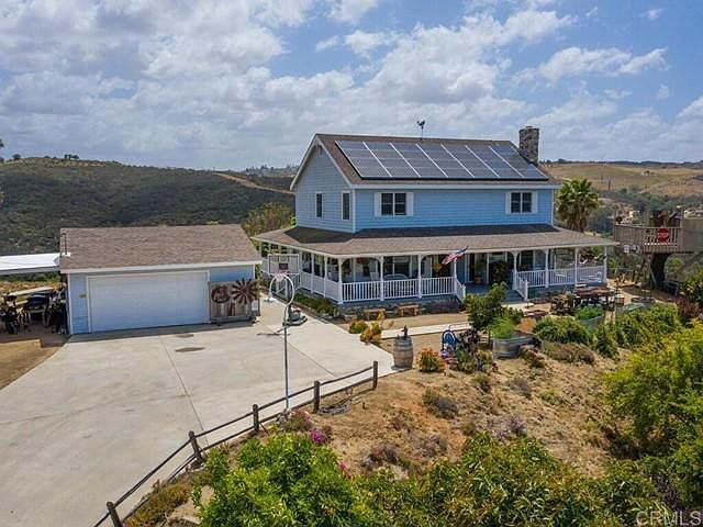 Come see this Beautifully maintained 4 Bedroom Pool Home that offers Spectacular Views and is just minutes from Bonsall Elementary and High Schools. Imagine yourself relaxing on the incredible Wrap Around Porch while enjoying the cool coastal influence breezes, cooling off on warm Summer days in the Sparkling Pool or Entertaining on the Expansive Back Deck. With 2753 square feet of living space, the main floor features natural hard wood flooring, a high ceiling entry and beautiful staircase, as well as a separate dining room with a sun porch and living room. The family room is so inviting, you can just picture yourself cozying up with a good book on cool evening in front of the masonry fireplace. The open kitchen concept has a bay window overlooking the back deck and breakfast nook with several large windows, so you will never miss the picture perfect views, as you sip your morning coffee. Also tucked away are a half bath, laundry area, storage space and oversized pantry. The second floor is comprised of 4 large bedrooms each with a walk-in closet, 2 full bathrooms, plenty of extra storage with a spacious master suit that will not disappoint. In addition to the energy saving Solar system there is an established garden, multiple fruit and citrus trees and plenty of space for toys or animals, all situated on 2.23 acres. The oversized two car garage and attached carport offer extra parking or storage. The property is comprised of two parcels each with their own APN numbers so options abound, add an ADU, a Workshop or potentially develop. All of this Centrally located with easy access to, San Diego, Temecula Wine Country, the beaches, and mountains. The details inside and out of this home creates a space everyone can appreciate and you will not want to miss the opportunity to come and experience it for yourself.