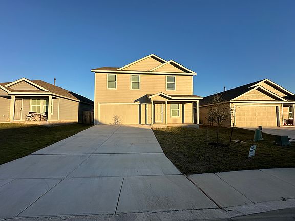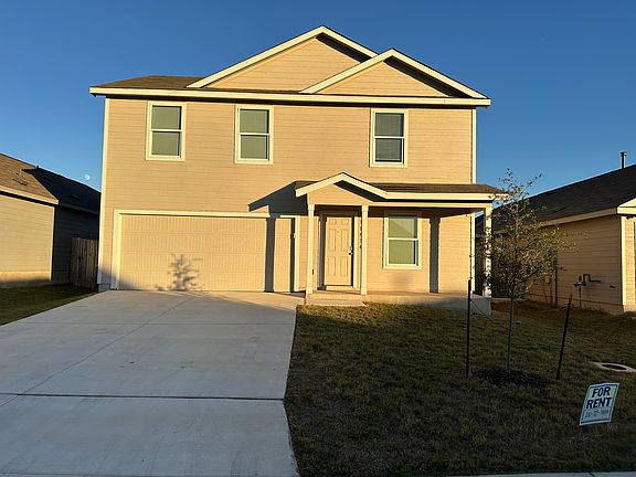 two stories, features 4 beds, 2.5 bath home nestled in the sought-after Hidden Trails subdivision of Bulverde, TX with direct access to Smithson Valley Rd. On the first floor, there is an owner's suite with a full bathroom, as well as an open concept with vinyl flooring throughout the family room, with a kitchen, living room, and dining area. The kitchen features 36'' white cabinets, 27 cu. ft. French door refrigerator w/ internal dispenser, quartz countertops, stainless steel appliances and Automatic Garage Door. Upstairs are three bedrooms that center around a loft, perfect as a casual living room or study space. Enjoy neighborhood amenities including an infinity pool with a clubhouse, gym, BBQ area, basketball court, walking/jogging trails, park/playground, and even a stocked fishing pond!! Easy Access to Bulverde, Spring Branch, New Braunfels, and San Antonio Too!