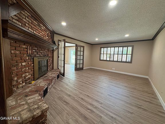 The open kitchen has plenty of cabinets, stainless appliances, pantry, and a breakfast area that flows into the spacious dining area/family room, then opens into a second living space where you'll find a cozy brick fireplace. French doors lead out to the peaceful backyard that provides great indoor/outdoor space with beautiful covered patio, a new BBQ, perfect for relaxing or entertaining.