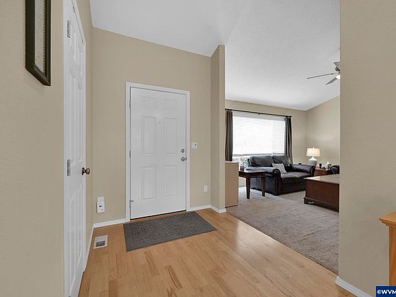 This immaculate home in Marquis Estates has had one caring owner since it was built in 2005. The living room is light and bright with tall ceilings and ceiling fan. The kitchen with island and custom oak cabinets has stainless steel appliances that stay, and a dining room with slider to the nice fenced back yard. A large shed is big enough to be a shop, there are underground sprinklers, and there is plenty of room for gardening. Newer laminate flooring leads you to the large bedrooms, including a