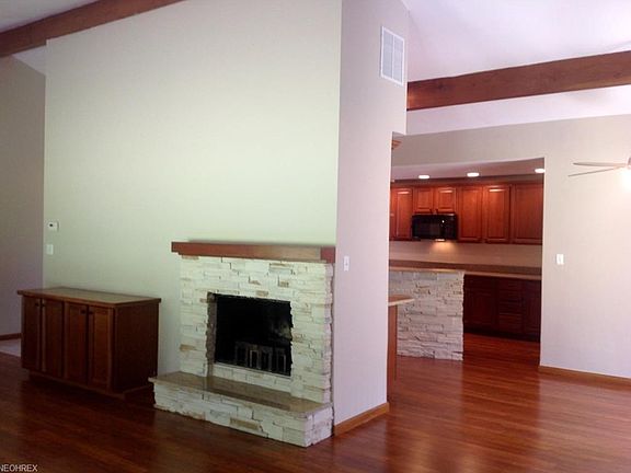 One floor living at it's finest! Pepper Pike Ranch with great curb appeal. Ceramic tiled Entry with half bath leads to spacious vaulted Great Room with stacked stone fireplace, built-ins & walls of glass overlooking the scenic backyard. Updated kitchen has raised panel Cherry Cabinetry, Granite Countertops, Stacked-stone Island, Under mount sink, Recessed lighting, Double ovens & Side by side refrigerator. Open concept dining area off the kitchen connects to the great room & has a walk out to a Stone Terrace. Two updated full baths feature Cherry Cabinets, ceramic tiled floors & Granite countertops. Two car garage has carriage style doors & connects to 1st floor laundry room. Walk out to the brick Patio in the back & enjoy your private 1+ acre setting. Roof, Gutters & Furnace new in 2014. New carpet in 2015. Location, location, location, just minutes from grocery store, restaurants, and shops