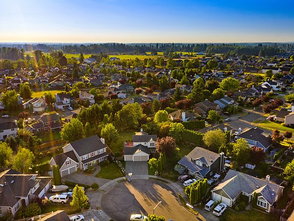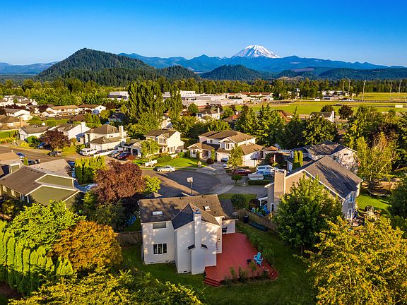 Stunning Mt. Rainier view 3 bedroom, 2.5 bath Flensted home on a massive 12,632 square foot lot on a cul de sac. Refined open concept living, with many updates through out; refinished hardwood floors, new carpet, new paint in and out, updated stylish lighting package, Quartz countertops and more. Living room, pocket home office, dining room, family room with slider to oversized back deck, and a fully fenced massive back yard with mature Blueberries, and a rose garden. Walking distance to schools and parks.