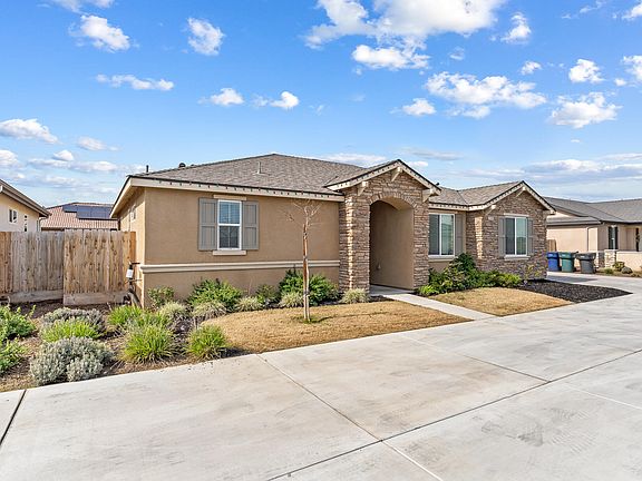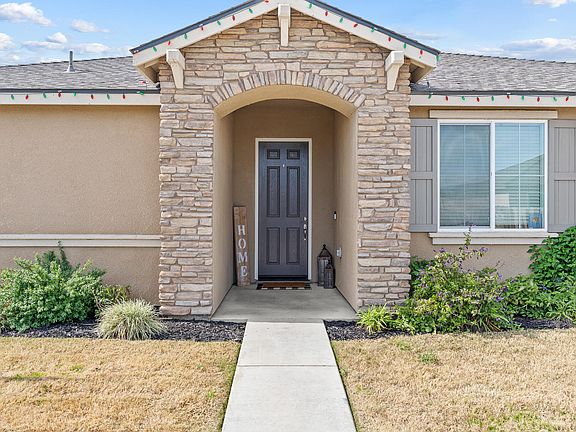 Welcome to a modern single story home that combines comfort, efficiency, and style in one of Tulare's fastest growing neighborhoods. Built in 2022, this residence offers 3 spacious bedrooms and 2 bathrooms across nearly 1,600 sq. ft., highlighted by an open concept floor plan perfect for entertaining. The heart of the home is a beautifully upgraded kitchen featuring white cabinetry, stainless steel appliances, a walk-in pantry, and an oversized island with pendant lighting that flows seamlessly into the dining area and living room with wood look flooring and a cozy electric fireplace. The private primary suite includes direct backyard access, a dual vanity bath, walk-in shower, and large closet. Additional bedrooms are generous in size, and the guest bath and laundry room provide convenience for everyday living. Outdoors, enjoy a covered patio with ceiling fan, storage shed, and ample yard space with room to create your ideal retreat. Energy-efficient owned solar adds incredible value. Nestled in a desirable community near Liberty Elementary, Tulare Western High, shopping, and dining, this home also benefits from Tulare's ongoing development expanding parks, new residential communities, and modern retail while retaining its small town charm and rich agricultural roots. A turnkey opportunity to live in a vibrant, growing part of the Central Valley.