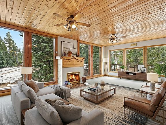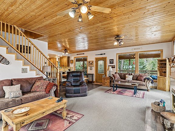 This stunning 2,706-square-foot, three-level cabin sits on just under half an acre and offers 3 bedrooms and 2.5 bathrooms in a thoughtfully designed layout. The main level features a spacious open floor plan filled with natural light from expansive windows and multiple access points to the deck—perfect for seamless indoor-outdoor living. You'll also find a convenient half bath, a beautifully modern kitchen with a walk-in pantry, and a nearby laundry room with ample storage. The upper level serves as a private primary suite, complete with a generous walk-in closet and a large ensuite bath, all surrounded by windows that create a bright, serene retreat. Downstairs, the basement level includes two additional bedrooms and a full bathroom, ideal for guests or family. Step outside to enjoy the covered deck and a spacious lot with plenty of room for a firepit and entertaining - an ideal setting for gatherings and making lasting memories.