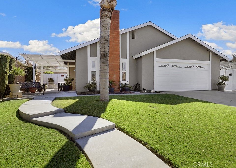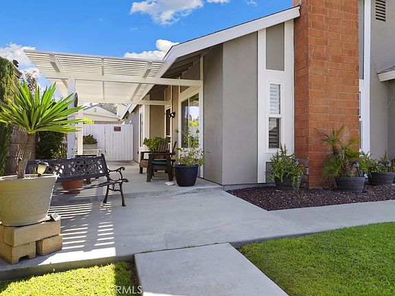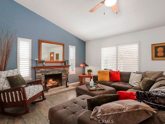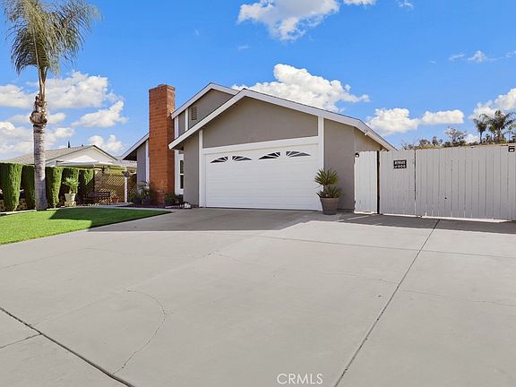 Stunning 4 bed, 2 bath single level home features great curb appeal, a spacious floorplan with vaulted ceilings, recessed lights, plantation shutters, a custom paint scheme, and a Smart thermostat! Enter into the family room with stacked stone fireplace and flows into the kitchen and dining room area. The kitchen features breakfast bar seating, wood cabinetry, and stainless steel appliances and overlooks the light and bright dining area with sliding glass door to the backyard. All 4 bedrooms are generously sized and have ceiling fans, the large primary bedroom sits at the end of the hall and has a private bathroom with walk-in shower, there is also a full-size hall bathroom for guests and the secondary bedrooms to share. Enjoy the entertainer's backyard with covered patio and attached pergola to relax under! There is beautiful rockscaping, grass turf, and raised concrete area perfect for you to add a BBQ and host your next party! Also enjoy the built-in firepit and included hot tub and above ground pool! There is also a covered front patio/porch area to enjoy and additional room on the side of the home for gated RV/boat/trailer! Conveniently located near schools, shopping, dining, and not far from the 91 Fwy!