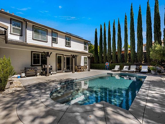 Welcome to this beautifully upgraded 5-bedroom, 3.5-bath Roseville home with a 4-car garage, backing to a private nature preserve greenbelt no rear neighbors ever! The chef's kitchen features quartz countertops with full-slab backsplash, double ovens, counter-depth fridge, pot filler, and butler's pantry. Highlights include Life-Proof LVP flooring, custom dry bar, mudroom, entry bench, and a 5th bedroom/office with French doors. The primary suite offers a custom glass shower, fireplace accent wall, built-in coffee bar with fridge, and a designer walk-in closet. Upgrades continue with custom window shutters, Nest dual-zone thermostats, Vivint security system, new HVAC coil, stair rail updates, and a chandelier with Bluetooth switch. Energy-efficient features include 38-panel whole-house solar with dual inverters, 8-panel pool solar with variable speed pump, EV charger, programmable pool vacuum, and Leaf Filter gutter guards (lifetime warranty). Outdoor living shines with a driveway extension that provides additional parking its a must see, new exterior paint, aluminum gazebo with outdoor TV, biometric lock, and access to a residents-only gated park. Truly move-in ready and designed for modern living