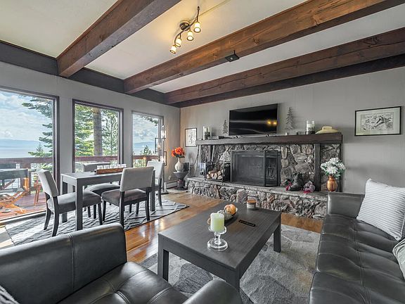 This Tahoe City home sits atop a hill on West Lake Blvd overlooking Hurricane Bay allowing for picturesque panoramic views of Lake Tahoe from the west shore. The spacious garage gives guests the convenience and security of covered parking and entry to the home. As you enter you will find the first bedroom equipped with two twin beds, walk-in closet, ensuite bath, and huge windows that showcase the home's incredible views. Just down the hall is a convenient 1/2 bath right off the living area. The living area is cozy yet open to the kitchen/dining area all with the same unforgettable lake views. The large open wood burning fireplace (with gas starter!) will quickly warm the entire space and provide a wonderful cozy ambiance for the whole family to enjoy. The large deck is THE place to hang out to watch with boats go by, and sit and enjoy a glass of wine while the lake reflects the stunning sunsets. Keep your eyes open for the Bald Eagles who love to fish just below this home! This home was recently outfitted with new patio furniture, gas grill, and propane firepit. Whether you are warming up take out from a local Tahoe City restaurant or preparing a gourmet family meal you will enjoy modern appliances, brand new dishes, utensils and cookware in the kitchen. As you make your way upstairs you will find the other two bedrooms equipped with brand new queen beds, en suite bathrooms, and the same absolutely incredible views as the rest of this Hurricane Bay gem. It's just a short walk down the hill to Hurricane Bay beach to enjoy with the whole family and the beach is pet friendly! Amazing hikes are very close by in Blackwood Canyon or up to Stanford Rocks or Eagle Rock. APPLICATION PENDING - Ski Lease Available - $4500/month plus utilities, $4500 deposit - Dec 1, 2025 to May 1, 2026. PLEASE review terms prior to inquiring. Tenant pays for snow removal, trash, water, cable/internet, water up front prior to arrival. Power and gas go into the tenants name. Review terms, answer questions and return to us via Zillow. We do require full time/year round employment, ski lease references if you are not currently residing together, great credit, full payment of all rent due thirty days prior to start of lease. If you are interested in leasing this home, please return your answers and we will be quickly in touch with next steps. How many in your group? How many cars do you have? Can you pay a deposit to confirm the lease and pre-pay the rent upfront? Have to ski leased a home in Tahoe in the past and can you provide good local rental references? Do you plan on using the home as a weekend/holiday home or will you be working/learning remotely in the home full time? Do you have pets or service animals? Do you plan to view the home before signing a lease? Thank you for taking the time to read and respond. We will be in touch quickly with next steps. Wells and Bennett Realtors - Tahoe City