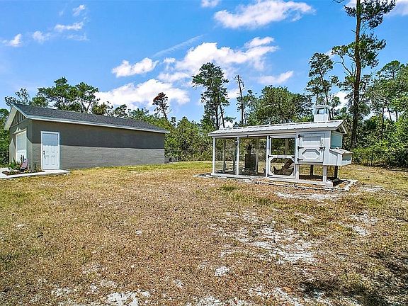 A MUST see, MOVE in ready stunning 5-bedroom, 3.5-bathroom, 2 car garage home on a 1-acre parcel. The circular driveway extends to the back left side of the home, leading to an additional 25' x 25' detached garage — ideal for extra vehicles, hobbies, or storage. Open floor plan, split bedrooms, Quartz countertops, stainless steel appliances, and walk-in pantry. Plantation shutters on every window. SURVEY and floor plan available. Lap pool, Jacuzzi, Starlink Satellite, 75-inch TV and chicken pen included. HOA is $92 a year. Boat and RV parking allowed and deeded access to Lake Norris and Lake Marion. Your dream home awaits! Schedule your showing today.
