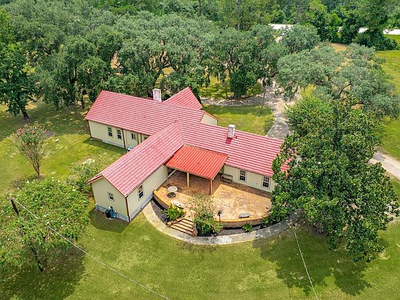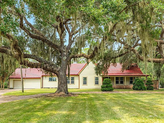 Welcome to paradise under the oaks—16.2 acres of natural beauty featuring a 1930s French-inspired home tucked beneath sprawling, moss-draped oak trees. A gated drive leads to timeless architecture blended with modern updates, including vaulted ceilings, hardwood floors, and a modernized kitchen with exposed beams. Spacious light-filled gathering spaces with framing views of the surrounding landscape create the perfect picturesque view for early mornings or unforgettable celebrations. Porches and a brick patio overlook rolling lawns and private lakes, offering the perfect setting for peaceful living or memorable outdoor moments. This rare estate is as versatile as it is breathtaking—ideal as a private residence, countryside retreat, or a one-of-a-kind wedding or event venue.