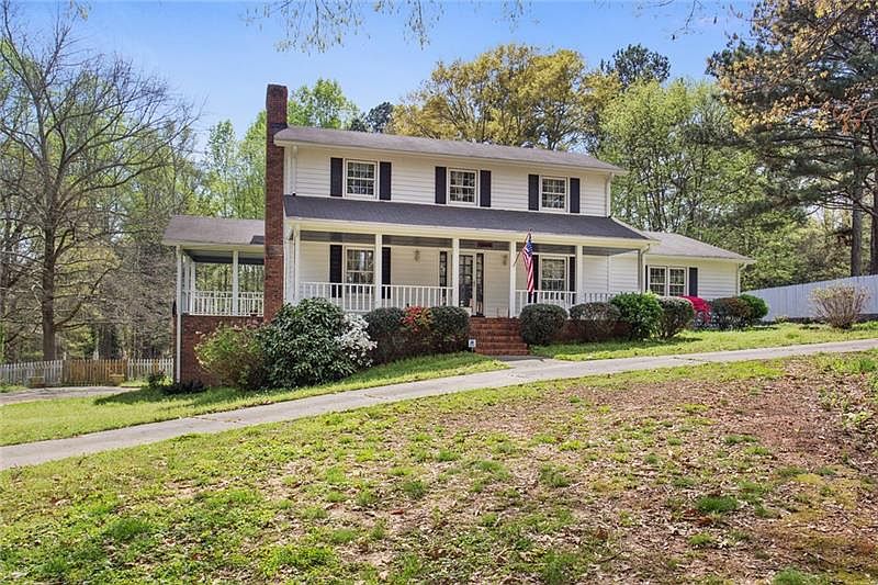 This authentic farmhouse with a white picket fence and wide front porch beckons you home. A Cobb County family homestead offering an abundance of charm. The beautiful land has been farmed and lived on since the 1940s by the same family. Well loved and maintained, the setting is one that is hard to find. The great room and dining room have an open lay out. The kitchen overlooks the idyllic back yard. A covered side porch offers more outdoor living space. Upstairs are three bedrooms with two full baths. Bonus finished space can be found in the basement. There is no