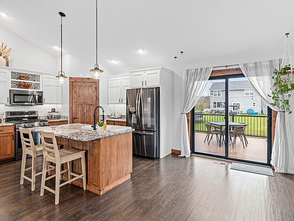 Not your cookie-cutter home. This custom, designer-finished property stands out with thoughtful upgrades and timeless style. Every detail was chosen with care during construction and carried through to completion, truly move-in ready. Nothing to do but unpack and enjoy. Step inside to a bright, open living area that is a perfect space for relaxing or gathering with friends. The open layout feels spacious yet warm, with high-end finishes and attention to detail throughout. The kitchen is both stylish and functional, featuring a large island, walk-in pantry, and modern backsplash. ideal for cooking, entertaining, and everyday life. Downstairs, the finished lower level adds great flexibility with a large family room centered around a cozy fireplace, two additional bedrooms, and a bath, perfect for guests, movie nights, or a home office setup. Step outside to enjoy a 12’ x 12’ composite deck overlooking the fenced backyard and gorgeous landscaping, a private outdoor retreat for relaxing or entertaining. The heated, insulated three-car garage offers year-round comfort and plenty of space for vehicles, hobbies, or projects. Located in an amazing neighborhood, this home combines quality craftsmanship with thoughtful design, a place you’ll be proud to call home. This is a must see in person!!