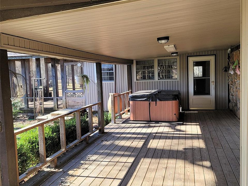 Perfect paradise getaway for a weekend or everyday enjoyment! 3bd 2ba, on 2 acres w/ beautiful trees and treehouse! Great kitchen with granite, screened porch with FP, shop, 2nd garage, equipment shed, greenhouse addition, half a mile to Flat Rock campground. Hottub stays.