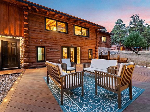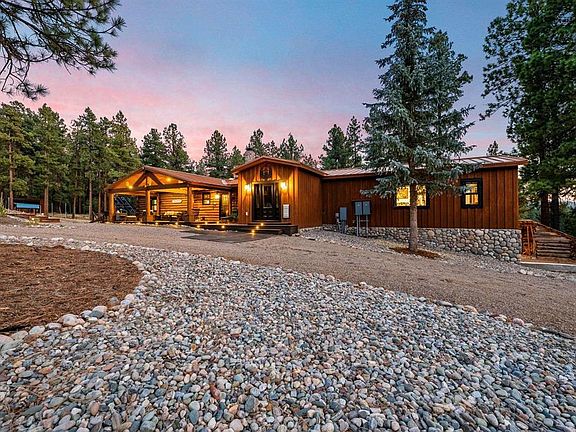 Experience "Whispering Pines Ranch" a Colorado ranch estate that combines timeless craftsmanship, modern sophistication, and the beauty of all four seasons. Perfectly positioned between Durango and Pagosa Springs, and just minutes from Bayfield, this 55-acre Ponderosa Pine filled sanctuary offers rare privacy, seamless access to the San Juan National Forest, and a lifestyle where elegance meets adventure. The 5,000 sq. ft. plus residence has been designed through the artistry of a master cabinet maker and the vision of an interior designer. Every finish reflects quality and intention—custom walnut cabinetry, new Anderson windows, designer lighting, and rustic flavor. A thoughtful split-level design allows for versatile living, whether hosting extended family, offering private guest quarters, or enjoying the space as a multi-generational retreat. The newly added primary suite is a true sanctuary with heated floors, an expansive dressing room, and a spa-inspired bath. Additional comforts include a sauna, heated tile floors, a new front deck, and a private rear deck with a hot tub—perfect for soaking beneath Colorado’s starlit skies. While the home is extraordinary, the barn is nothing short of magnificent. Completely reimagined, it now serves as a unique gathering place—equal parts rustic and refined. With exquisite woodwork, a custom bar, fireplace, and expansive recreational space, it’s ideal for hosting celebrations, intimate evenings with friends, or simply relaxing after a day on the trails. This remarkable structure elevates the entire estate into a destination. Year-round enjoyment is at the heart of this property: spring days tending the greenhouse and raised beds, summer adventures in the forest, autumn evenings gathered by the barn’s fireplace, and winter nights by the wood-burning stove after skiing or snowshoeing. Complimentary amenities include equestrian facilities, a new garage, expansive shop, tractor port, chicken coop, and even a built-in horseshoe pit. All buildings feature new standing seam metal roofing for durability and timeless style. Nature and recreation define the estate. A private pond draws abundant wildlife—wild turkey, deer, and majestic elk roam freely across the property. A dedicated private hiking trail meanders through the forest, creating year-round opportunities for exploration, from spring wildflowers to golden autumn aspens and quiet winter snowshoeing. This estate represents the pinnacle of Colorado living—luxury, seclusion, and the rare opportunity to own a property that is as functional as it is unforgettable.