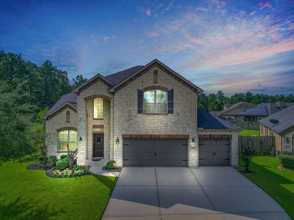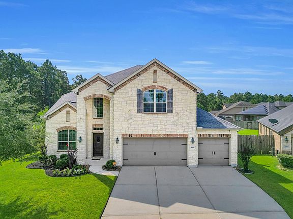 This one has it all! 4 bedrooms, massive back yard, at the end of a cul-de-sac, next to thousands of acres of pristine forest, with a three-car garage and three car-wide driveway! This home is clad in beautiful white limestone with multiple peaked roof gables for a striking appearance. Inside, you'll find everything you're looking for: an open floor plan, formal dining room, game room upstairs, granite countertops, hardwoods, new premium carpeting, separate tub and shower in the primary bathroom. The back yard is fully fenced, has a covered patio, with an unobstructed view of the forest. Falls at Imperial Oaks is loaded with recreational amenities including pools, trails, clubhouse, plus top-rated schools within walking distance of the home. With 99 just minutes away, you're close to everywhere you want to be.