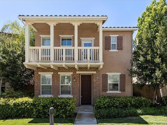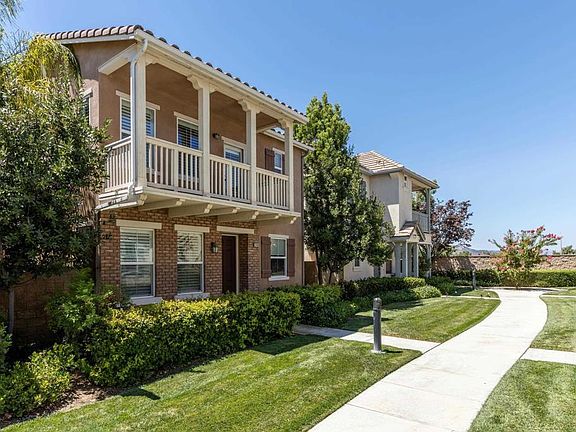 Charming family home of approximately 2100 sq feet is located in the picturesque Wolf Creek subdivision & districted for Great Oak High School, the #1 high school in Temecula! 4 bedrooms recorded on title but downstairs #4 is used as a charming office with frosted french doors. Master plus 2 bedrooms upstairs PLUS a spacious LOFT/MEDIA area! Off-street/greenbelt entrance and an alluring brick style facade & balcony off the upstairs master bedroom create great curb appeal. As you pull into Domenoe Way, it is lined with charming streetlights, mature purple crepe myrtle trees and a picturesque mountainous background. The kitchen has granite counters and stainless appliances which all convey. Laundry room upstairs with washer dryer that also convey. Downstairs office offers plenty of space for a larger family, teen, guests, inlaws or nanny. The spacious upstairs loft has built in desk and bookshelf area and is perfect for homework, exercise or tv/gaming. A spacious primary suite has doors out to a romantic balcony facing the green belt entry & double vanity, separate tub/shower & spacious walk in closet. The patio has a trickling wall fountain by which to enjoy a good book or beverage after work. If outdoor entertainment is what you love, there is a large gorgeous Tuscan style clubhouse with pool, spa, barbecues and childrens' park. This home has everything a family could ask for! Note upstairs bedrooms are virtually staged.