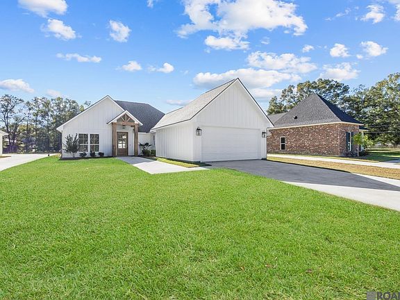 Price reduced to $399,900 AND thru October 31, 2025, builder will offer $8k in closing costs with an accepted full price offer. NEW CONSTRUCTION in Denham Springs, LA! Flood zone X and NO HOA! Step inside this gorgeous 4 bedroom home that boasts 3 full bathrooms, 2 car front-load garage and 2,110 living square feet for everyone to spread out. All hard floors throughout the home, no carpet, porcelain tile in all wet areas. Slab granite countertops in kitchen, laundry room and all 3 bathrooms, upgraded gold hardware and lighting package through this home and a farm-style gold kitchen faucet. Walk-in pantry and even a pet room too! Neutral color paint palette on the walls and vinyl plank wood floors. Soak up all the natural light and vitamin D that beams in from the beautiful spread of windows in the dining area through to the living room. Cathedral style ceilings, custom tile shower and a giant garden soaking tub awaits in the primary bathroom suite. Freshly sodded front and backyards and private pond views will make you fall in love with this home! Eastside Elementary, Denham Springs Junior High and Denham Springs High School school districts!