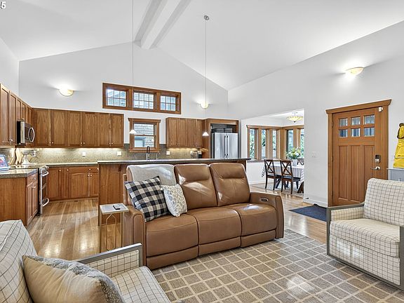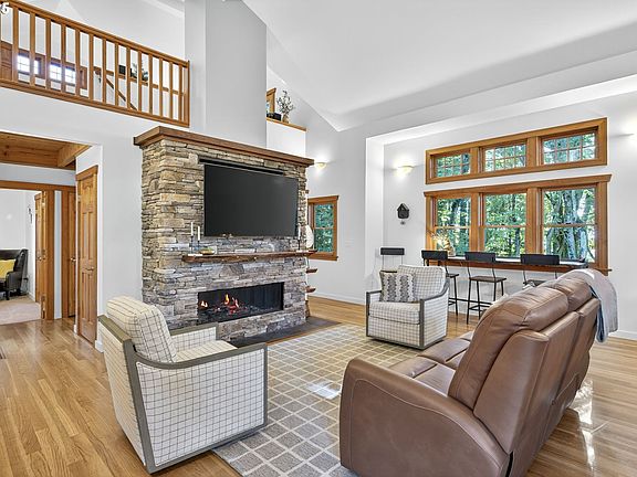 Enjoy the tranquil treescape and dappled light in this Pacific Northwest craftsman home only minutes from Portland’s urban edge, yet worlds away from the everyday. This home exudes cozy charm and comfort. Featuring natural cedar siding, a covered porch made for rainy-day reading, and walls of windows that frame the forest; this home lives like living art. Step inside and you’ll find warm wood tones, exposed beams, and an open-concept living space that invites deep breaths and slower mornings.The heart of the home is the vaulted great room with stone fireplace, natural wood details, and ample space for guests to gather. The kitchen features granite countertops, stainless steel appliances, and plenty of counter space for creative cooking. A formal dining area and a fun bar with a forest view round out the dining options.The primary suite feels like a retreat within a retreat—open the French doors for birdsong, and relax in a spa-inspired bath complete with soaking tub. Additional bedrooms and a flexible lower level offer room for guests, creative work, or simply more space to breathe. Every inch of the home is thoughtfully designed to make the most of its natural setting, with moments of tranquility around every corner.If your soul craves the quiet of the woods, but your life keeps pulling you back to the city—this is your perfect perch.