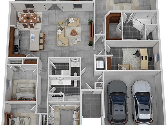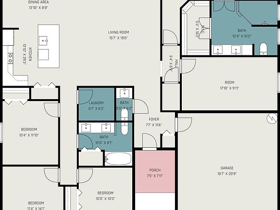 Contemporary living spacePool-ready lotOpen floor planBursting with natural lightFlowing layoutWood cabinetsStainless steel appliances