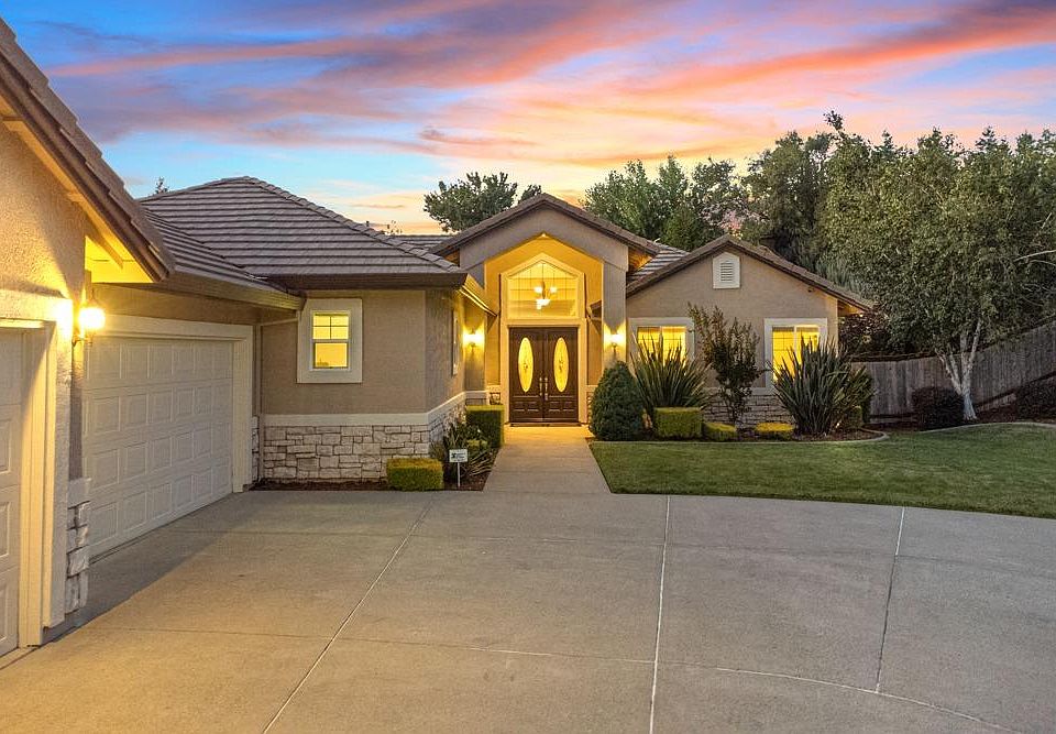 Lovely Single-Story home on a 1/2-acre with a professionally landscaped hilltop lot located on an inside QUIET street in the highly desirable Sierra Crossing neighborhood! With loads of privacy built into the peaceful setting, the home's flowing floorplan features 3,167 SqFt, 4 bedrooms, 2 baths + separate office. Enter through grand French doors to natural light from large, newer windows to the best of both worlds: An open-concept floorplan plus multiple built-in office areas so everyone has their own space. Experience seamless indoor-outdoor living + entertaining from the living and dining rooms through to the bright family room and large kitchen. Enjoy newer quartz counters, a breakfast bar, upgraded GE Profile stainless steel double ovens, and dining area surrounded by windows, plus sliding glass doors to the covered patio. The spacious primary suite also opens to the patio. Outside, the back and side yards are graded for privacy with the serenity of a sculpted rock garden boasting a recirculating waterfall feature. Brand-new upgrades include NEW PLUMBING throughout (NO Kitec) and new exterior paint. Other recent updates include OWNED SOLAR, newer fences + a hardwired 22KV GENERAC generator. No Mello Roo's. Minutes to El Dorado Hills.