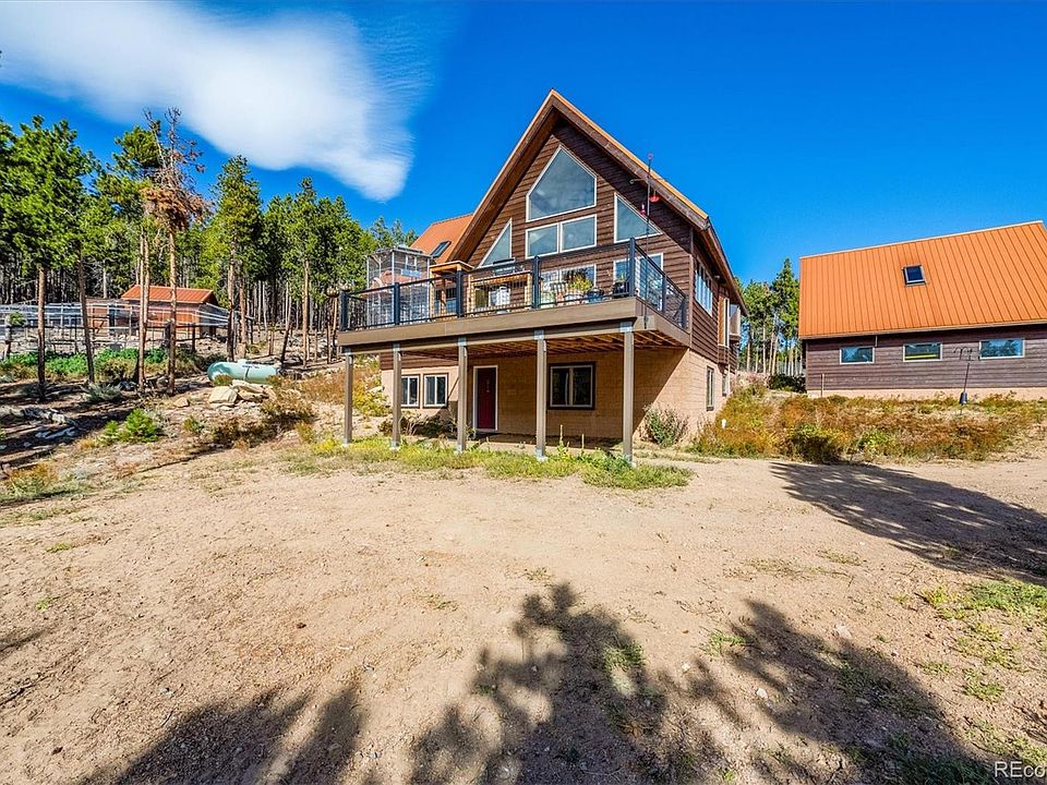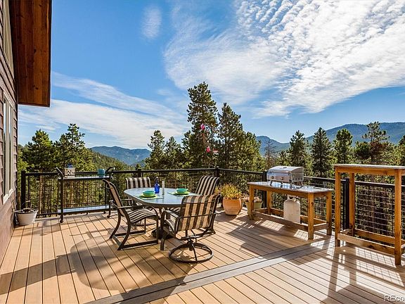 Custom Timber Frame Hybrid Home on 35 acres, built for passive solar heating, in awe inspiring location. Wall of windows dramatically captures one's attention when you enter. Feel the beauty of nature inside this well-maintained home as you look out the windows of a spacious Great Room accommodating the updated kitchen, dining & living areas. Picture your Christmas tree in the living area w/ 21 ft ceilings & Brazilian Koa hardwood floors. Main floor master suite, 5-piece bath and double walk-in closets. Two large bedrooms, bath and loft overlooking great room on 2nd floor. If you're looking for mountain living, the beauty of this location, approx. 2.5 miles to coffee shop on Hwy 72 in Coal Creek Canyon, is perfect. Work from home, no problem with Mountain Broadband fiber opt internet. Bring your animals or start your dream of an alpaca/lama ranch. Owners spared no expense in building and designing the barn w/ a tack room & roll up garage door for easy unloading of hay, 5 stalls, 2 separate areas for animals to play, water & electric installed. The acre yard near barn is fenced w/no climb galvanized steel horse fence. Keep your chickens in the animal proof covered pens w/hen houses. Full walk out basement is framed and ready to finish (bath stubbed in). Sophisticated Triangle Tube Prestige in-floor heat along with passive solar & wood stove keep the home toasty, even on cold days. New engineered 16x26 deck with Timber Tech planks and aluminum powered coated railing adds not only beauty, but outdoor useable space for summer grilling & dining. Hummingbirds are known to gather at the feeders on summer days. Once you're at the property, driveway is split and to the left is the house and garage. Park on over 6,000 sq. ft flat parking area near garage. House & garage are at the top of a gently sloping pine forest. Make time to preview this property, take a hike (creek near bottom of slope), enjoy the natural surroundings & take in the fresh air... BREATHE.