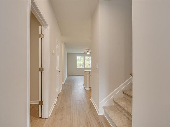 The Jefferson is creating quite the stir. You'll be charmed by the open-concept layout of the kitchen, breakfast area, and family room. This design fosters an ambiance of togetherness, perfect for entertaining while preparing meals. Envision gathering around the large kitchen island while engaging in lively conversations in the family room, or cuddle up next to the modern electric fireplace surrounded by beautiful stone. The primary bedroom, conveniently situated off the family room, offers a true retreat with dual sinks and tile shower with bench seat. This sanctuary provides an oasis of relaxation, allowing you to unwind after a long day. Off of the foyer, you will find a convenient flex room you can use as formal living room or dining room, along with a powder room for your guests. A pocket office, built in cubbies, pantry and large storage closet are located near the garage, making it convenient to unload everyone's belongings. Venturing upstairs, you'll find two additional bedrooms and full hall bathroom with dual sinks. The fourth bedroom surprises you with a private full bathroom en suite, providing comfort and privacy for family and guests. The upper flex area opens up even more possibilities, whether it's a playroom, home gym, or media room. This Jefferson has it all, plus more.... finished in the Tailored Design Collection, Picket Tile Backsplash in Kitchen, Quartz Countertops, Soft Close Cabinets, LVP Flooring and many other details add quality and character to your new home. Finish your day on the covered back patio overlooking mature trees and greenspace. Built with quality and longevity in mind, the home comes standard with desirable features such as gutters, a sprinkler system, and durable vinyl siding. Each home is built using energy efficient construction methods and are independently inspected and tested by The Home Energy Rating System (HERS) Index. *Photos are for illustrative purposes only and actual home finishes may vary*. Lot A63