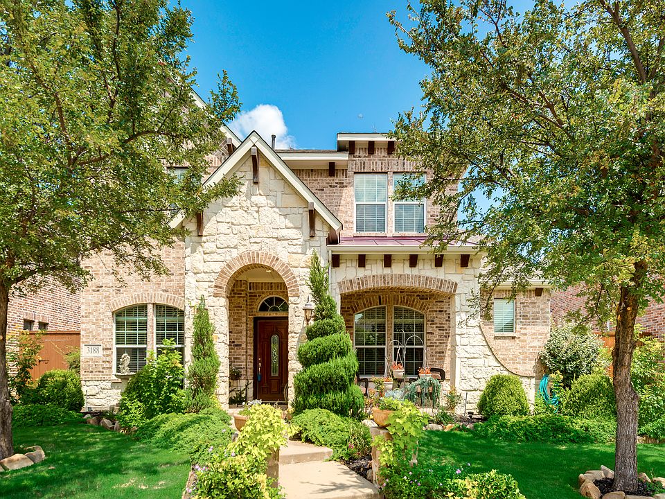 Priced Below Value! Well-Maintained home in beautiful Pearson Farms and within walking distance to elementary and high school! Great floor plan with open living, dining and kitchen that is perfect for family and entertaining! Living room features wall of windows overlooking backyard, built ins, and gas and wood burning fireplace! Kitchen features granite, stainless, large island for entertaining, and tons of cabinets for storage! Downstairs master with large master bath with large closet, dual sinks, separate shower and tub! Upstairs has another large seating, 3 additional bedrooms with baths for each room, plus large media room! Nice Landscaping! 2 walk-in attic storage rooms! 8 ft fence! large covered porch!