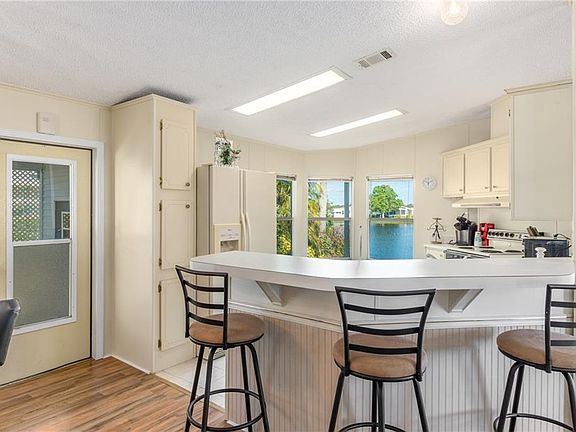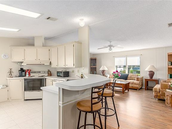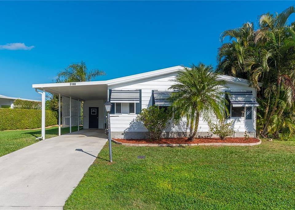 OWN YOUR OWN LAND. Desirable Savanna Club. 18 hole executive golf course. Lots of amenities including tennis courts, pool and putting greens. Relax on your screened back porch overlooking a lake. Freshly painted inside and out with new decorative shutters. Some new flooring and some new blinds. Property has a great open floor plan and it is being sold furnished with a golf cart. All you need to move in is your toothbrush. Great location and wonderful buy! Cash offers only